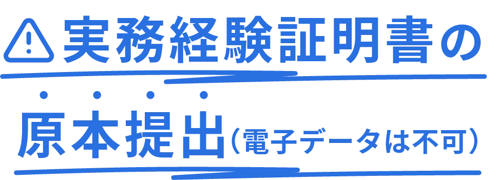 実務経験証明書 の 原本提出 (電子データは不可)